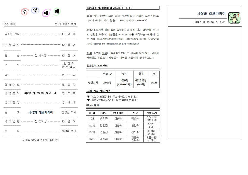 October 05, 2025 . 샴버그침례교회 2025년 10월 5일 교회 주보