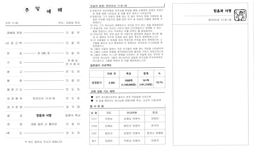 July 24, 2022 . 샴버그침례교회 2022년 7월 17일 주보