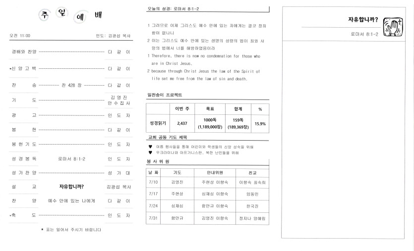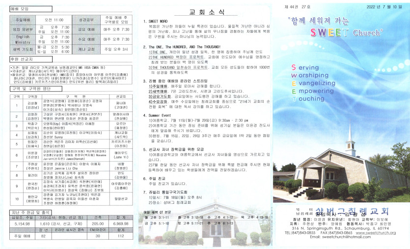 July 15, 2022 . 샴버그침례교회 2022년 6월 12일 주보
