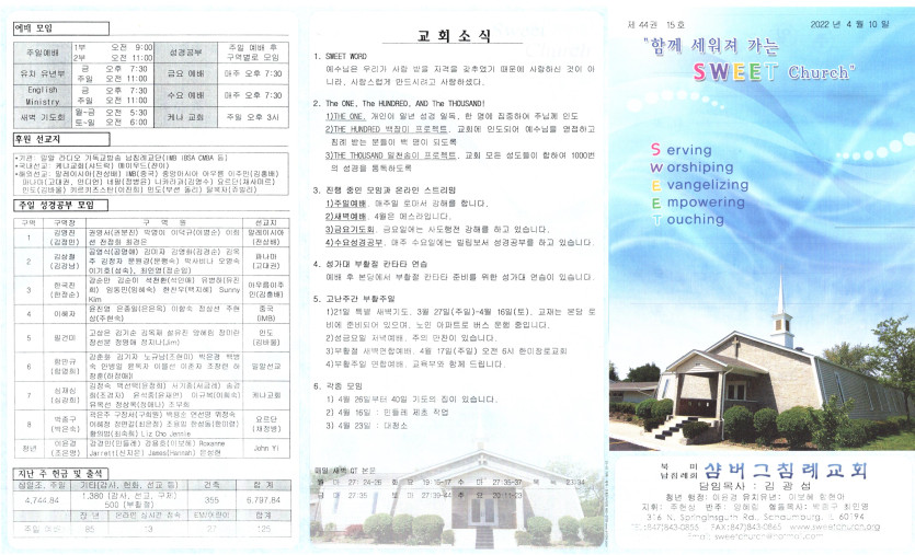 April 14, 2022 . 샴버그침례교회 2022년 4월 10일 주보