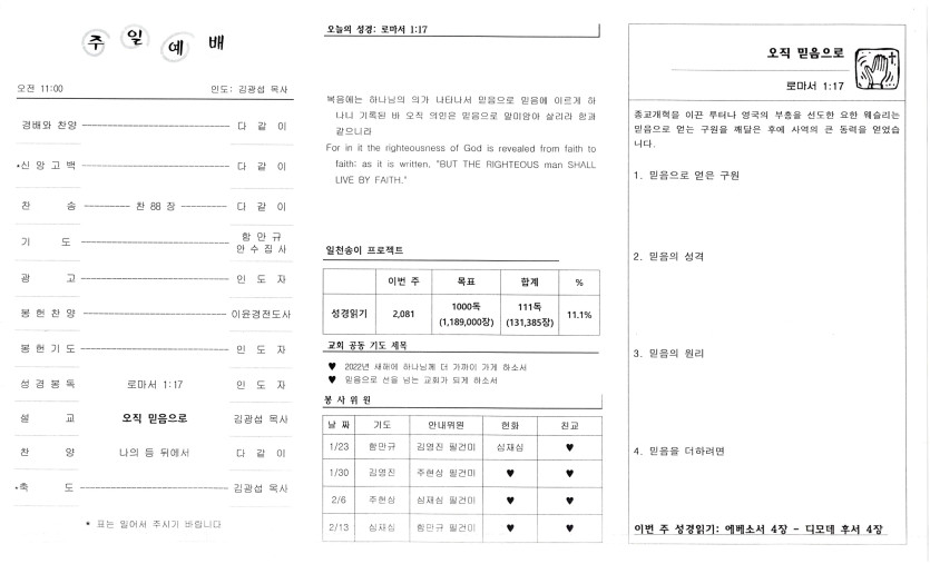 January 27, 2022 . 샴버그침례교회 2022년 1월 23일 주보