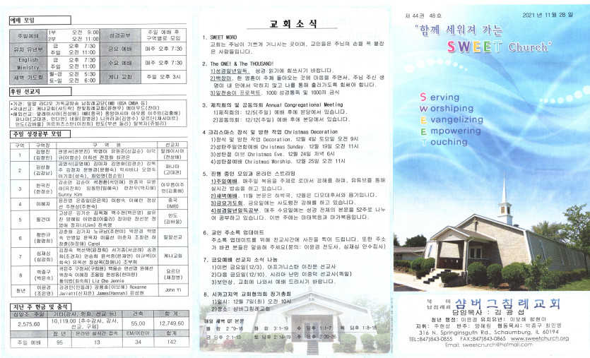 November 30, 2021 . 샴버그침례교회 2021년 11월 28일 주보