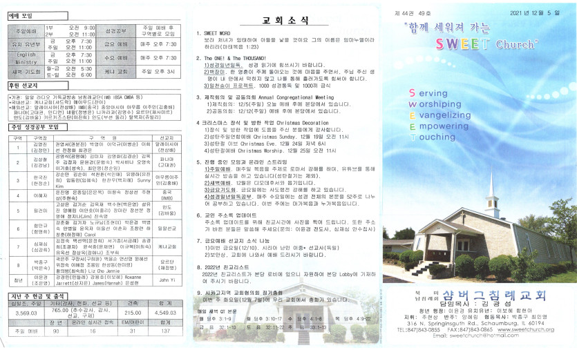 December 09, 2021 . 샴버그침례교회 2021년 12월 5일 주보