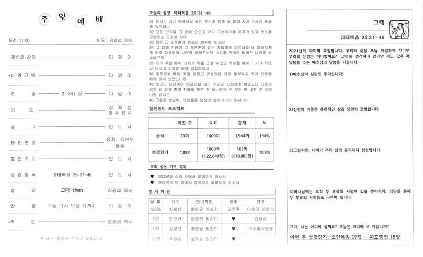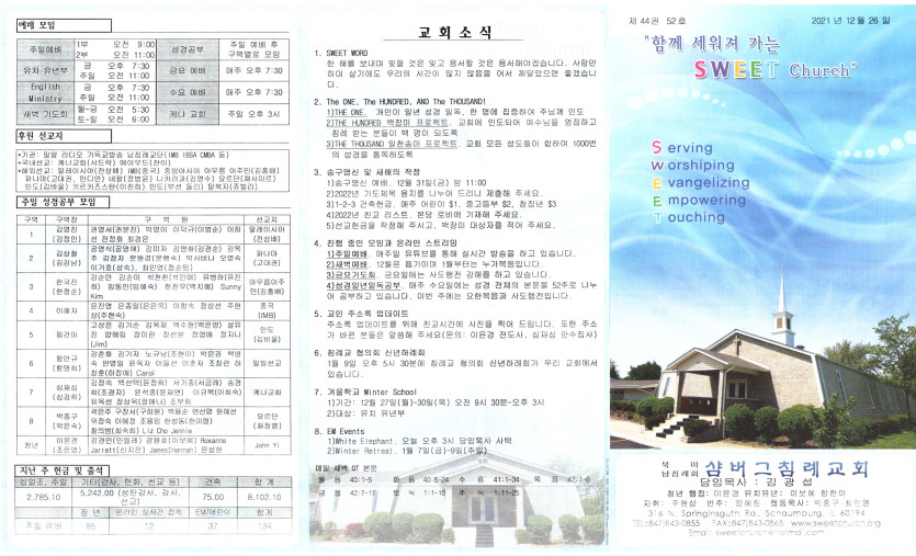 January 04, 2022 . 샴버그침례교회 2021년 12월 26일 주보