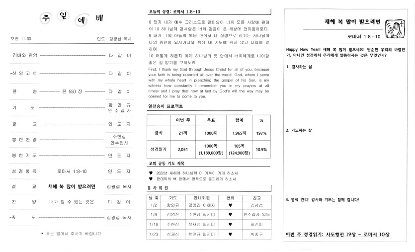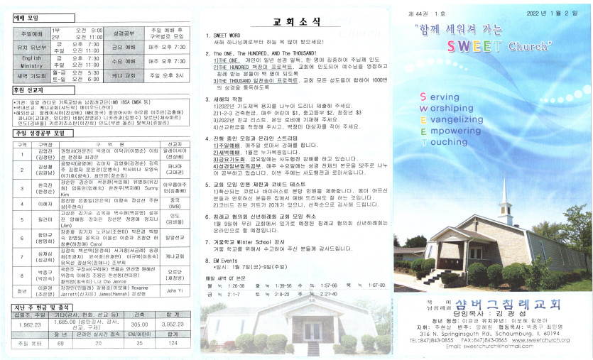 January 04, 2022 . 샴버그침례교회 2022년 1월 2일 주보