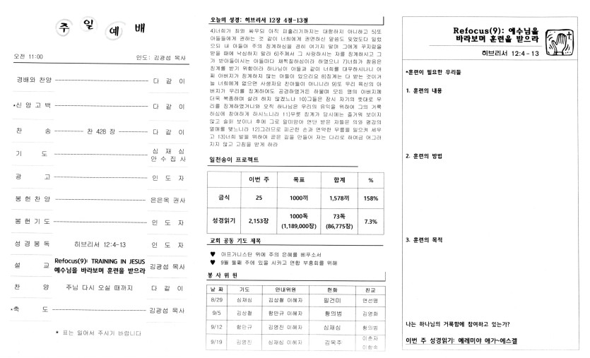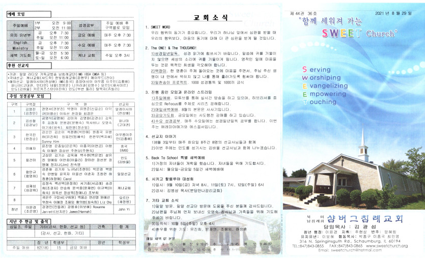 August 31, 2021 . 샴버그침례교회 2021년 8월 29일 주보