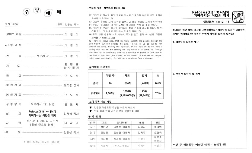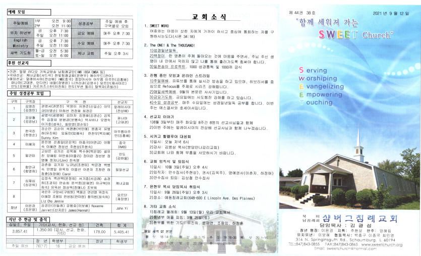 September 14, 2021 . 샴버그침례교회 2021년 9월 12일 주보