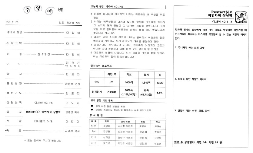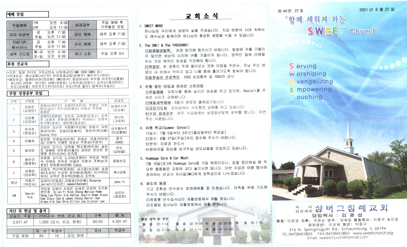 June 30, 2021 . 샴버그침례교회 2021년 6월 27일 주보