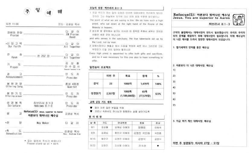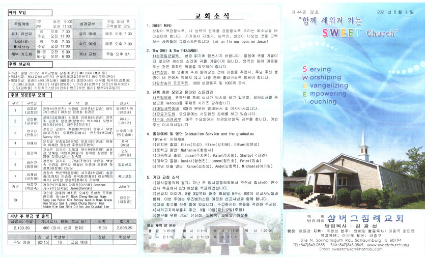 August 04, 2021 . 샴버그침례교회 2021년 8월 1일 주보