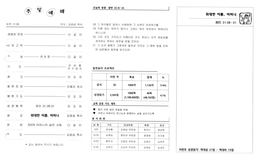 May 11, 2021 . 샴버그침례교회 2021년 5월 9일 주보