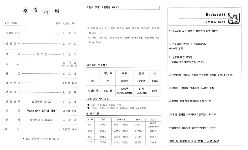 June 14, 2021 . 샴버그침례교회 2021년 6월 13일 교회주보
