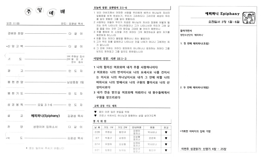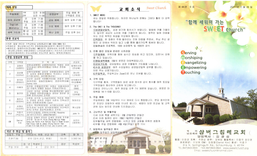 April 16, 2021 . 샴버그침례교회 2021년 2월 28일 주보