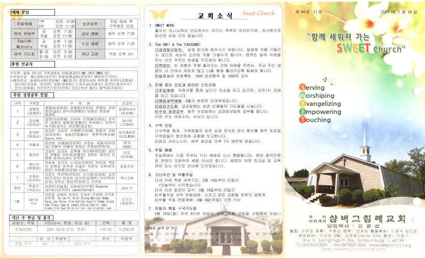 April 16, 2021 . 샴버그침례교회 2021년 3월 14일 주보