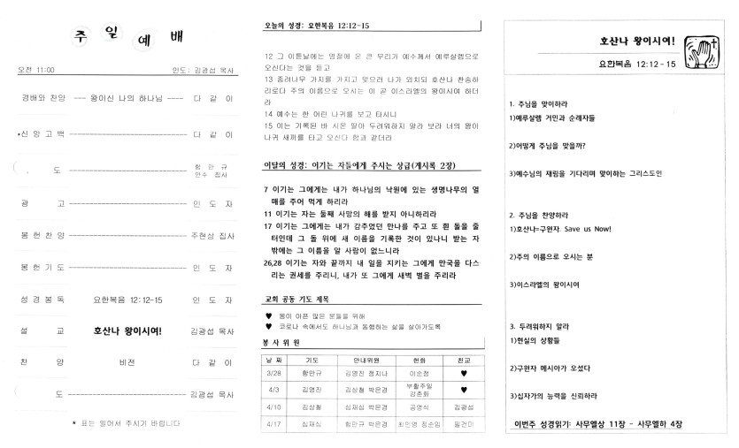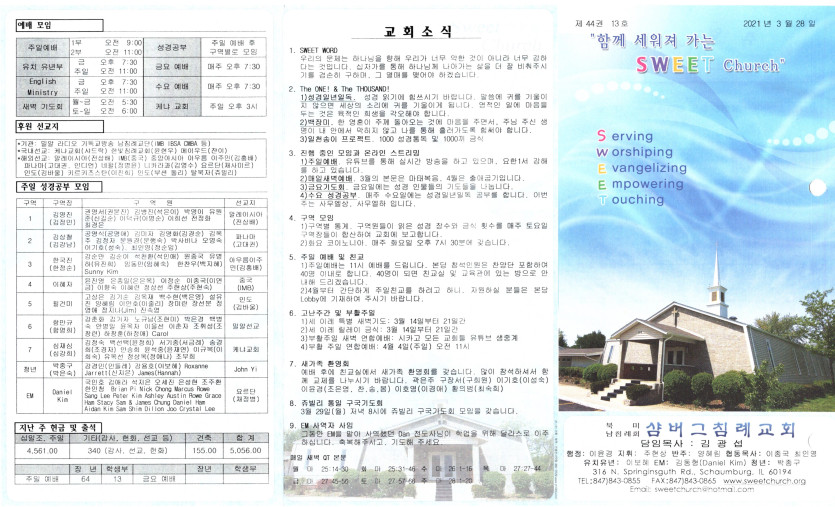 April 16, 2021 . 샴버그침례교회 2021년 3월 28일 주보