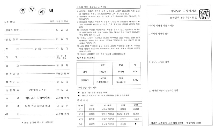 April 16, 2021 . 샴버그침례교회 2021년 4월 11일 주보