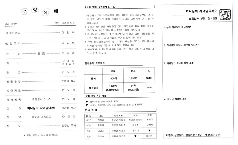 April 20, 2021 . 샴버그침례교회 2021년 4월 18일 주보