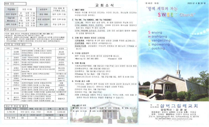 May 03, 2023 . 샴버그침례교회 2023년 4월 30일 교회주보
