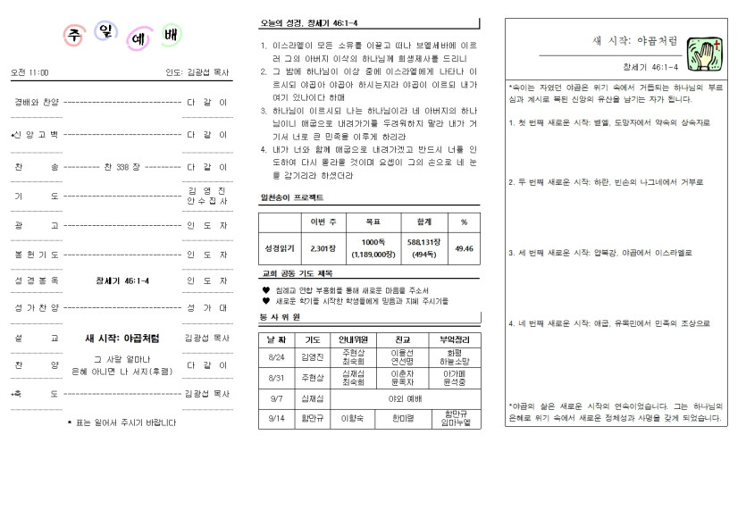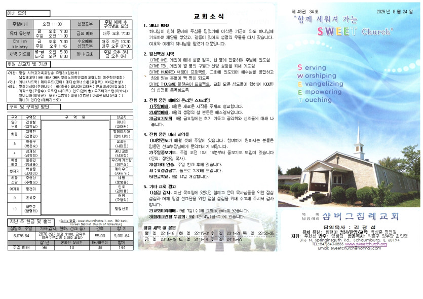 August 24, 2025 . 샴버그침례교회 2025년 8월 24일 교회 주보