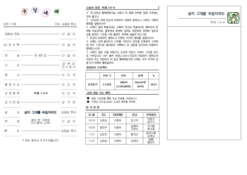 2025년 10월 19일 교회 주보 > 주보