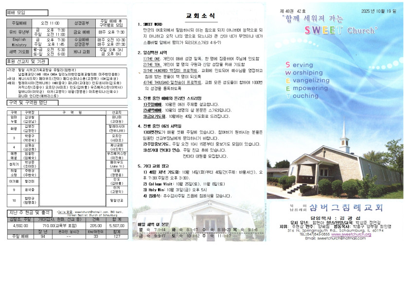 October 19, 2025 . 샴버그침례교회 2025년 10월 19일 교회 주보
