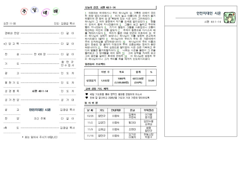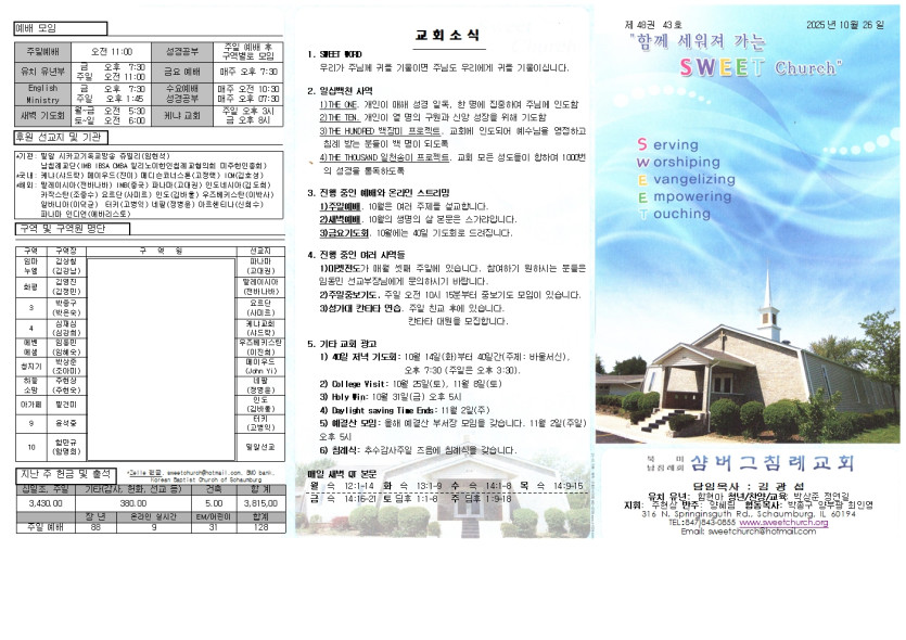 October 26, 2025 . 샴버그침례교회 2025년 10월 26일 교회 주보