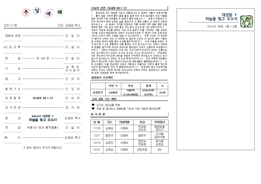 2025년 11월 30일 교회 주보