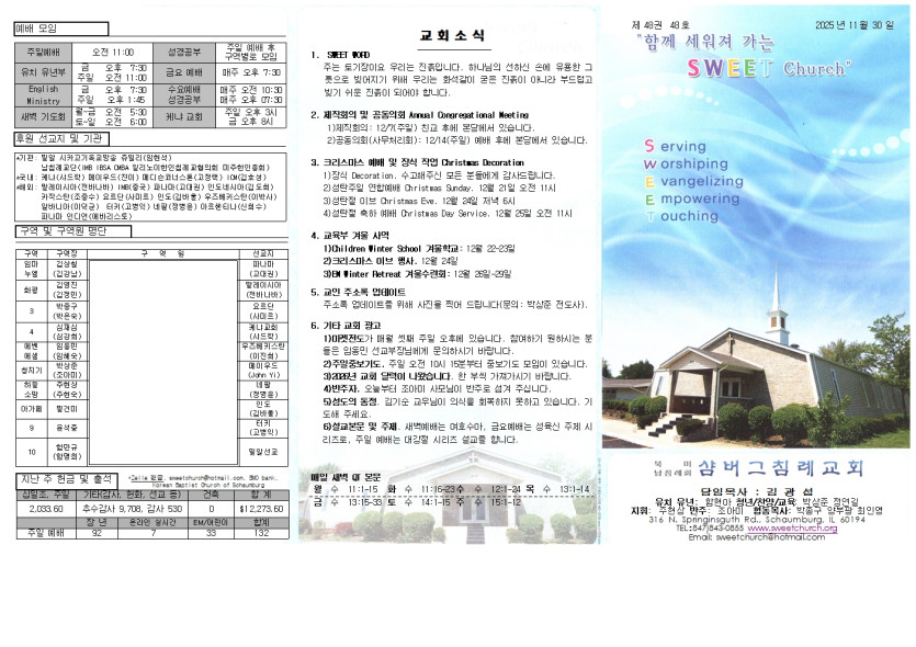 November 30, 2025 . 샴버그침례교회 2025년 11월 30일 교회 주보