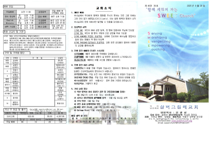 September 28, 2025 . 샴버그침례교회 2025년 9월 28일 교회 주보